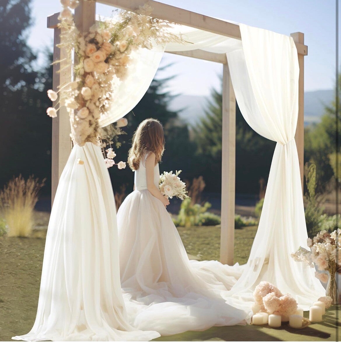 30" x 20Ft Wedding Arch Draping Fabric, 3 Panels Ivory Sheer Curtain Drapes Extra Wide & Long Backdrop Curtains for Wedding Arch Ceremony Birthday Party Decorations