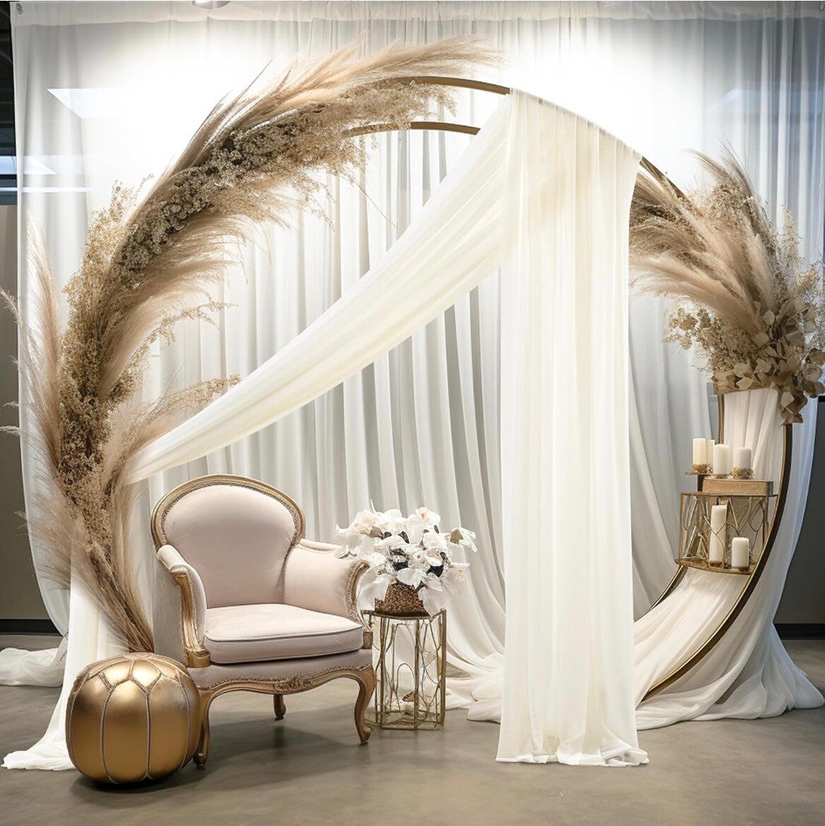 What’s Included: Set of 3 ivory arch drape panels. Each panel measures 30” wide × 20 ft long.